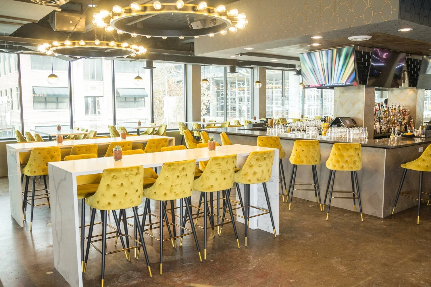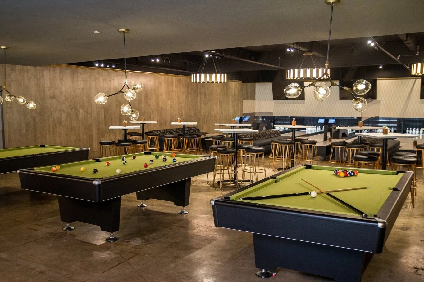 The venue has a restaurant with a wrap-around bar, a covered patio overlooking West Sixth, an Arcade, a Mechanical Bull Arena, and a Game Room. The mechanical bull arena holds the star of the show; THE BULL! The Game Room houses six duckpin bowling lanes, three pool tables, two karaoke rooms, and cocktail tables. The arcade features Basketball, Skee-Ball, and Pac-Man Royale.
